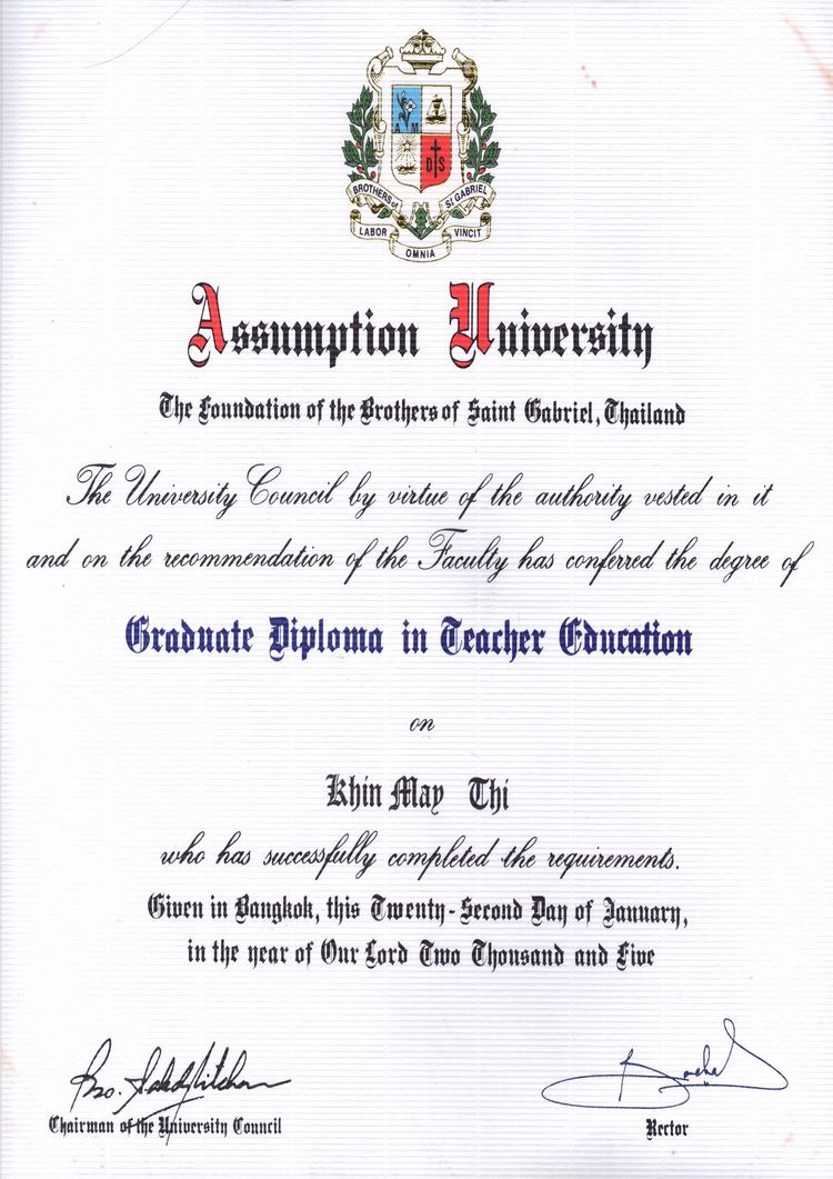 Established in 1969, the Assumption University is a private higher education institution located in the urban setting of the large metropolis of Bangkok (population range of over 5,000,000 inhabitants). This institution also has a branch campus in Bang Na and Abac City. Officially recognized by the Ministry of Higher Education, Science, Research and Innovation of Thailand, Assumption University (AU) is a coeducational Thai higher education institution formally affiliated with the Christian-Catholic religion. Assumption University (AU) offers courses and programs leading to officially recognized higher education degrees such as bachelor's degrees, master's degrees and doctorate degrees in several areas of study. See the Buydiploma degree levels and areas of study table below for further details. This 55-year-old Thai higher-education institution has a selective admission policy based on entrance examinations and students' past academic records and grades. International applicants are eligible to apply for enrollment. AU also provides several academic and non-academic facilities and services to students including a library, sports facilities, study abroad and exchange programs, online courses and distance learning opportunities, as well as administrative services.